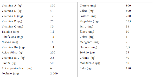 Valores de Referência para Vitaminas e Minerais: